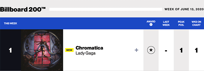 |Lady Gaga.com|Lady Gaga(Billboard chart history)| |Ariana Grande.com|Ariana Grande(Billboard chart history)|