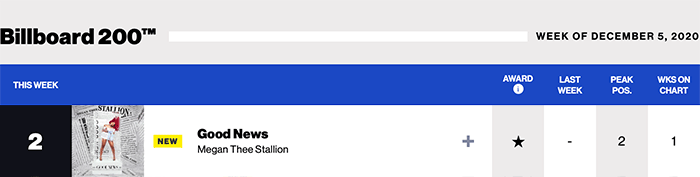|Megan Thee Stallion.com|Megan Thee Stallion(Billboard chart history)| |Beyoncé.com|Beyoncé(Billboard chart history)|