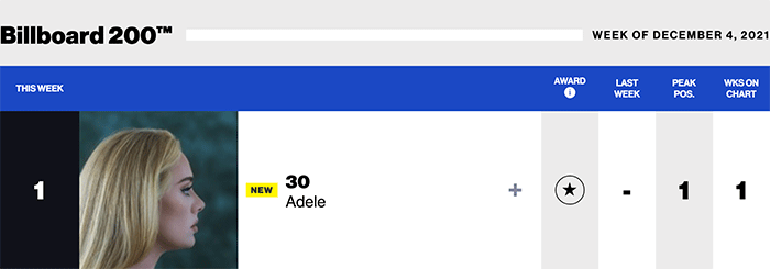 |Adele.com| Adele(Billboard chart history)|