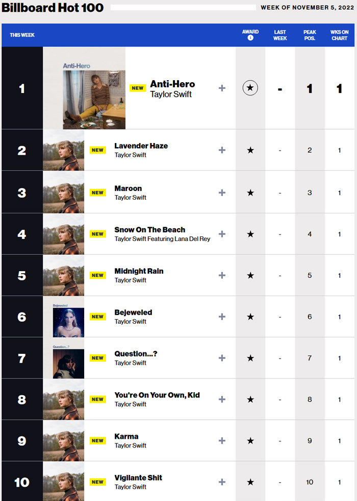 |Taylor Swift.com|Taylor Swift(Billboard chart history)|