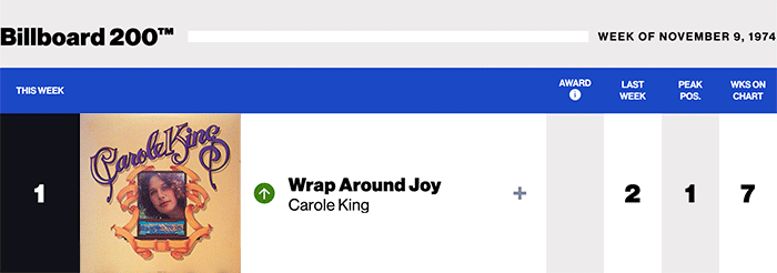 |Carole King.com|Carole King(Billboard chart history)|