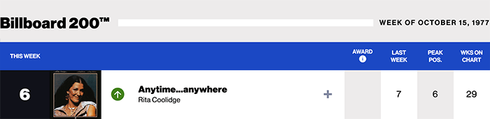 |Rita Coolidge.com|Rita Coolidge(Billboard Chart History)|