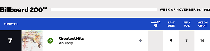 |Air Supply.com|Air Supply(Billboard chart history)|