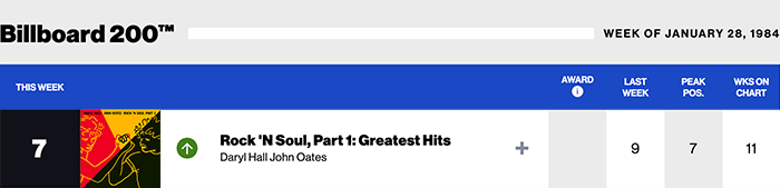 |Hall & Oates.com|Daryl Hall & John Oates(Billboard chart history)|