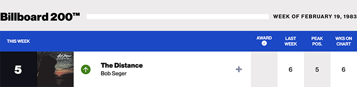 |Bob Seger.com|Bob Seger(Billboard chart history)|