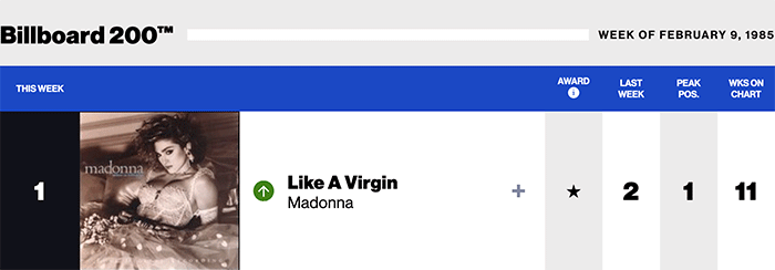 |Madonna.com|Madonna(Billboard chart history)|