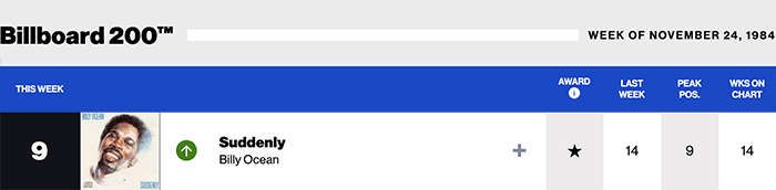 |Billy Ocean.com|Billy Ocean(Billboard chart history)|