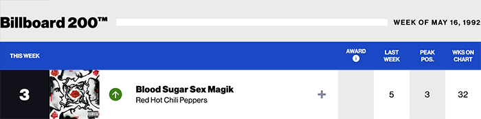 |Red Hot Chili Peppers.com| Red Hot Chili Peppers(Billboard Chart History)|
