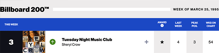 |Sheryl Crow.com|Sheryl Crow(Billboard Chart History)|
