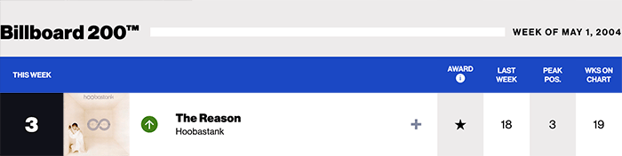 |Hoobastank.com|Hoobastank(Billboard chart history)|