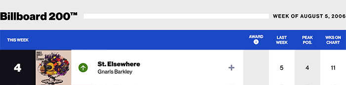 |Gnarls Barkley(Billboard chart history)|