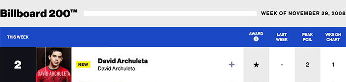 |David Archuleta.com|David Archuleta(Billboard Chart History)|