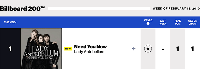 |Lady Antebellum.com|Lady Antebellum(Billboard chart history)|
