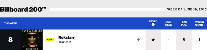|Taio Cruz.com|Taio Cruz(Billboard chart history)|