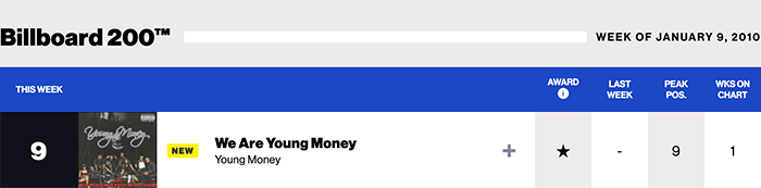 |Young Money(Billboard chart history)|