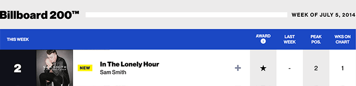 Highest charted position No.2, 2014/09/06 ♪ |
