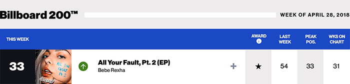 |Bebe Rexha.com|Bebe Rexha(Billboard chart history)| |Florida Georgia Line.com|Florida Georgia Line(Billboard chart history)|