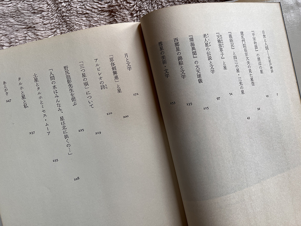 この本は、上の初版(昭和28年)と下の新版(昭和50年)との間に何編か収録されていないエピソードがあります。後書に詳しいのですが、初版には13編収録されていましたが、新版では本人が気恥ずかしいという理由で省いた「総天然色映画『銀河鉄道の夜』」の代わりに「賢治文学と天体」「SF作家の先駆者としての稲垣足穂と宮澤賢治」「『晴天懇意』への疑問」『Xの字の天の川』が追加で執筆されました。