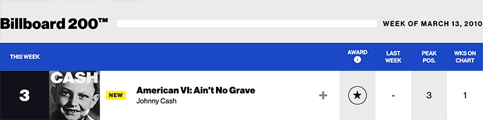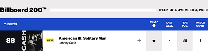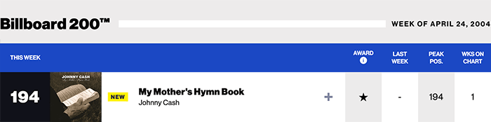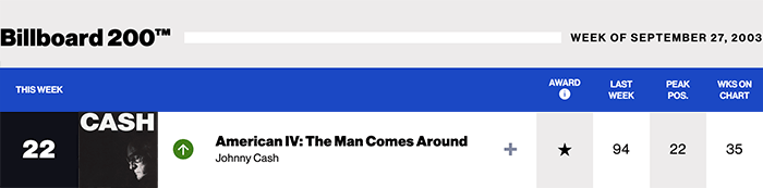 | またまたクエンティン・タランティーノ監督作品に挿入曲として、しかも嬉しいのはキャッシュ&ルービンでレコーディングされ、アメリカン・シリーズでは未発表作品。アコースティックギターによる弾き語り。 Billboard200は58位(2004/05/01) |