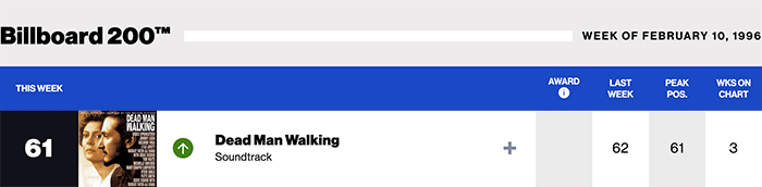| ショーン・ペンとスーザン・サランドン主演、ティム・ロビンス監督。サントラには豪華な(らしい)アーティストがこぞって参加していますが、注目はブルース・スプリングスティーンとエディ・ヴェダー(パール・ジャム)でした。そんな中にあって、ライ・クーダーのプロデュースで1曲参加のジョニー。ナッシュビル録音とあってかなりなカントリーを意識したサウンド。異彩を放っているのは、いつも通りに歌声を披露してくれたトム・ウェイツのThe Fall of TroyとWalk Away。おしどり夫婦の手がける映画だけあって、内容はシリアス。そしてミッシェル・ショックドの参加を見つけた時は嬉しかったな。 Billboard200は61位(1998/01/24) | ||