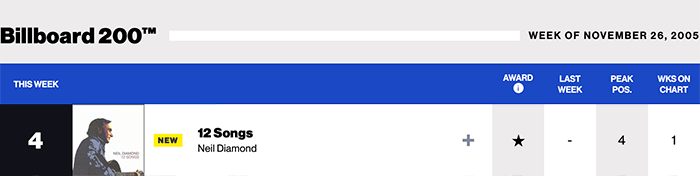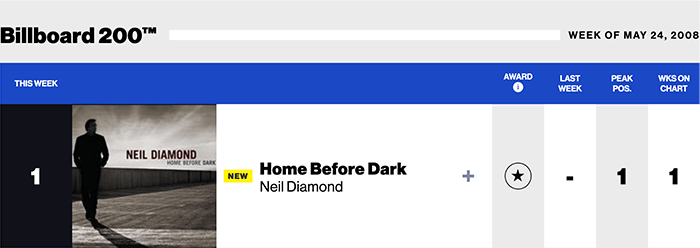 が、よくよく思い返してみれば、ザ・バンドの『ラストワルツ』に出演しているし、ソングライターとしてもかなりのヒット曲の作者でもあります。特に私はビルボードのヒットチャートを趣味にしていますが、ニール自身のNo1ソングを含め、計4曲も頂点に到達するヒット曲を書いているメロディメーカーなのです。
