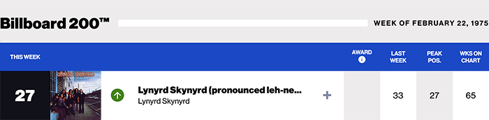 ![]() Lynyrd Skynyrd are; Ronnie Van Zant; Vocals Gary Rossington; Guitar Allen Collins; Guitar Ed King; Bass Billy Powell; Keyboards Bob Burns; Drums |