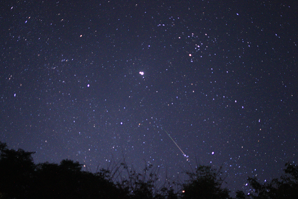 虫たちが奏でるメロディが子守歌になって、夜半過ぎにはようやく町も眠りについた。星空はすべてを包み込み、優しく見守ってくれている。僕らは安心して地面に寝っころがり、自然の一部になっていることを大地の温もりから確かめる。大自然の懐に抱かれていると実感できる瞬間だから、星見物はこれに限る。そして、時折耳に当たるそよ風の音が、ぼくには星たちが天界の話をささやいてくれているような気がしてならない。 |