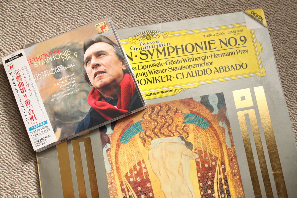 | まだアナログが主流だった時代のジャケットは、本当に芸術的なデザインがたくさんありました。特にドイツ・グラモフォンのシリーズは結構音楽以上(笑)に思えるものもあって、アバドのベートーヴェン・シリーズもクリムトの作品をうまく取り込んだ飾っておきたくなるようなデザインでした。 アバドとウィーン・フィルがまだうまくいっていた頃の全集からの一枚で、このあとベルリンに移ってしまって以降、一度として共演がなくなってしまいました(ウィーン・フィルから「有名になって勉強をしなくなったから」呼ばなくなったそうです。中野雄著『指揮者の役割』に詳しい)。 そのベルリンとの共演盤としてリリースされたのが、ウィーンからちょうど10年後の1996年にレコーディングされたアバドの誇らしげなジャケットが良い ソニー盤。珍しく新譜で、国内盤で買っちゃいました。買っちゃいましたというのもおかしな表現ですが、このあとにアバドは2度ベルリンと全集(ビデオ版を含めると都合3回も)をレコーディングしていますが、このソニー盤は単発でのレコーディング。ジャケットでいえば2000年以降にアバドのモノクロのポートレイト(まるでアントン・コービンが撮ったと思えるほど)をあしらったシリーズが好きですね。 |