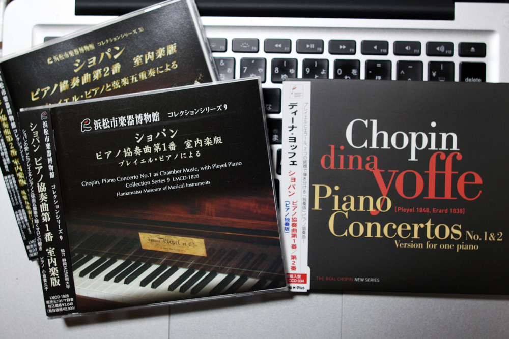 白神さんの演奏に酔いしれているところへ、すべての楽器がオリジナル楽器という、天界の音楽ファン(私だけか、そんなこと書くの)にとって、垂涎の一枚がレコーディングされました。第1番(コレクション9)のディスク(プレイエル1830年製)には、ピアノ協奏曲の他にピアノ三重奏曲、ピアノ協奏曲と同じ編成による「別れの曲」が収録されています。 第2番(コレクション35)でも同じ楽器、奏者によるレコーディングで、協奏曲の他にワルツ、マズルカ、バラード、ノクターン、舟歌といった小品が収録されています。 |