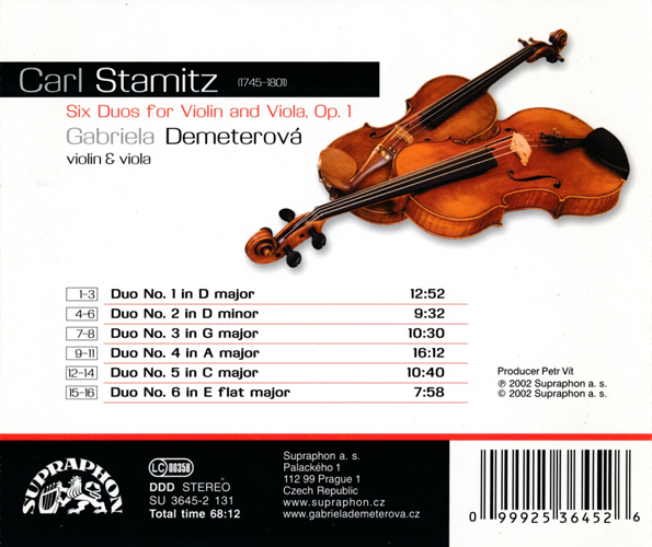 ヴァイオリンとヴィオラのための二重奏曲 Wolfgang Amadeus Mozart(1756-1791) Carl Stamitz(1745-1801) |