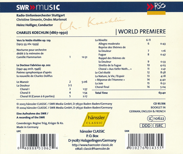 ケクランはここで紹介した管弦楽曲のほか、ピアノ、もしくはハープ独奏のOp.32と、フルートとホルン、ハープのためのOp.33と魅力的な夜想曲を残しています。また、彼は(本職の?)作曲家という肩書きのほかに天文学者としての顔を持っていることから、その作品には天文学を思わせるタイトル曲を見つけることができます。