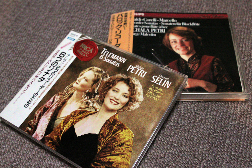 | 高校生の時(今から30年以上昔むかし…)、休み時間に友人の一人から「昨日のテレビ見た?」と、少々興奮気味に声を掛けられました。前日の夜、その友人は何気なくテレビをつけて、チャンネルを回したところ、NHK教育(3ch)で放送していたミカラ・ペトリのリコーダーにK.O.されたとのこと。彼は普段、アコギをジャカジャカかきむしるようにフォークを歌うことで学校でも知られた存在。私は幸いなことに、そんな彼を魅了してしまったミカラ・ペトリのCDを一枚だけ持っていました。彼から「CD持ってたら貸して欲しい」と懇願され、「来日したら一緒にコンサートに行こう!」ということにまで発展し、それから数年後、高校を卒業して双方ご無沙汰していたおり、ペトリは来日したのでした。 |