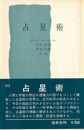 このあとに紹介しているポール・クーテール同様、科学的(批判的)立場に立った上で占星術の起源、歴史を教えてくれます。副題「その科学史上の位置」。 |