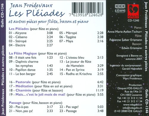フルートとピアノのための「プレアデス」 La Flute Magique(Pour flute et piano) 16. Pastorale(Pour flute et piano) Passage(Pour flute, basson et piano) |
