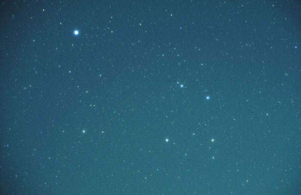 北斗七星、麦星、真珠星と進んだ曲線は、そのまま4つの並びのからすへと伸びていきます。 |