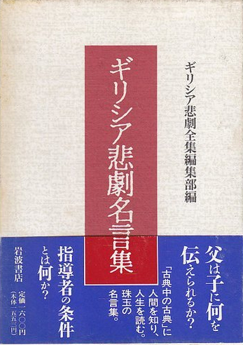 岩波から出版された新訳の『ギリシア悲劇』から名言だけを抜粋した書。私は膨大な巻物に圧倒され、まずは手始めにこちらのダイジェスト版ともいう【名言集】から入りました。
