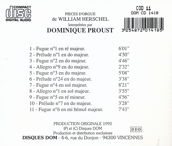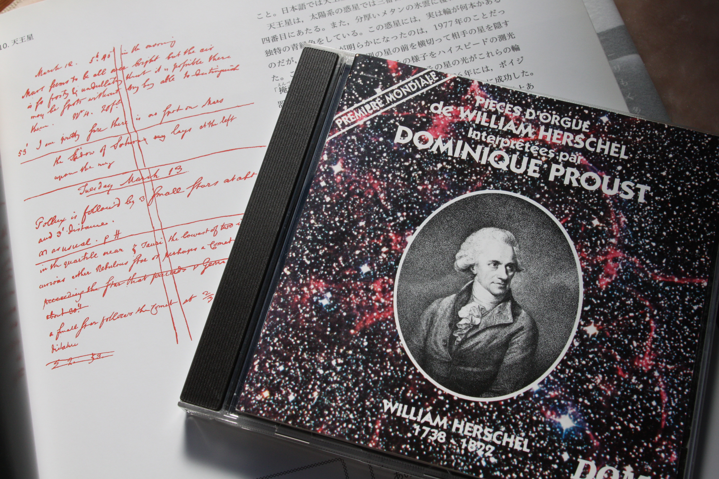 | ヨーロッパ南天天文台(ESO)に籍を置く天文学者でありながら、オルガニストという経歴の持ち主ドミニク・プルーストとは、さながら現代のウィリアム・ハーシェルと呼べるかもしれません。 短調を1曲だけ含み、残り10曲(変ホを含む)は長調の曲が並びます。澄んだオルガンの音色が、青空を思い起こさせてくれるのは、もはや連想ゲームの域かもしれません(笑)。バッハのように神のため、礼拝のためといった趣ではなく、おそらく音楽教育の一環としてレッスンを想定した単調な雰囲気なので、深い感動を呼ぶ起こしてくれるような曲想は得られませんが、天文ファンなら、彼の思いが天空を突き抜けて遥か宇宙の彼方へと想像することは簡単ではないでしょうか? そんな創造力豊かなリスナーなら、このアルバムが決して退屈な一枚であるはずがありません。私は個人的に暮れの時期に取り出して聞くことが多い一枚です。 |