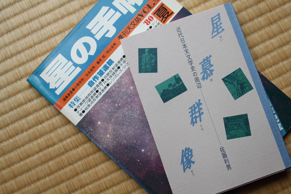 | 15年で幕を下ろした季刊誌『星の手帖』には、アマチュア向けとはいえ専門家の興味深い連載が掲載されることがあります。自分の興味があれこれ変化すると、まず手に取るのが『星の手帖』。だいたい取り上げてくれているので嬉しいです。ただ、刊行されていたリアルタイムのときには難しすぎて目で追っていただけ… というのが現状でした(笑)。 このページでは『星の手帖』他に投稿された佐藤利男さんの『星慕群像』を紹介します。あとがきで著者が書いているように 「記事のテーマは、日本の天文学に係る話題のうち、時期的に明治・大正のころのものが多く、しかも天文学の歴史というよりは、その周辺にまつわる雑和的な事柄が多いのは、単に私の嗜好の表われにすぎず…」 他で読むことの出来る日本の天文学史では触れられていないところを突いてきているので、執筆された記事を全部読んでみたいなぁ、と思わせてなりません。出版されたのは1993年で、『星の手帖』休刊後に星の手帖社から出版されました(知らなかった)。 |