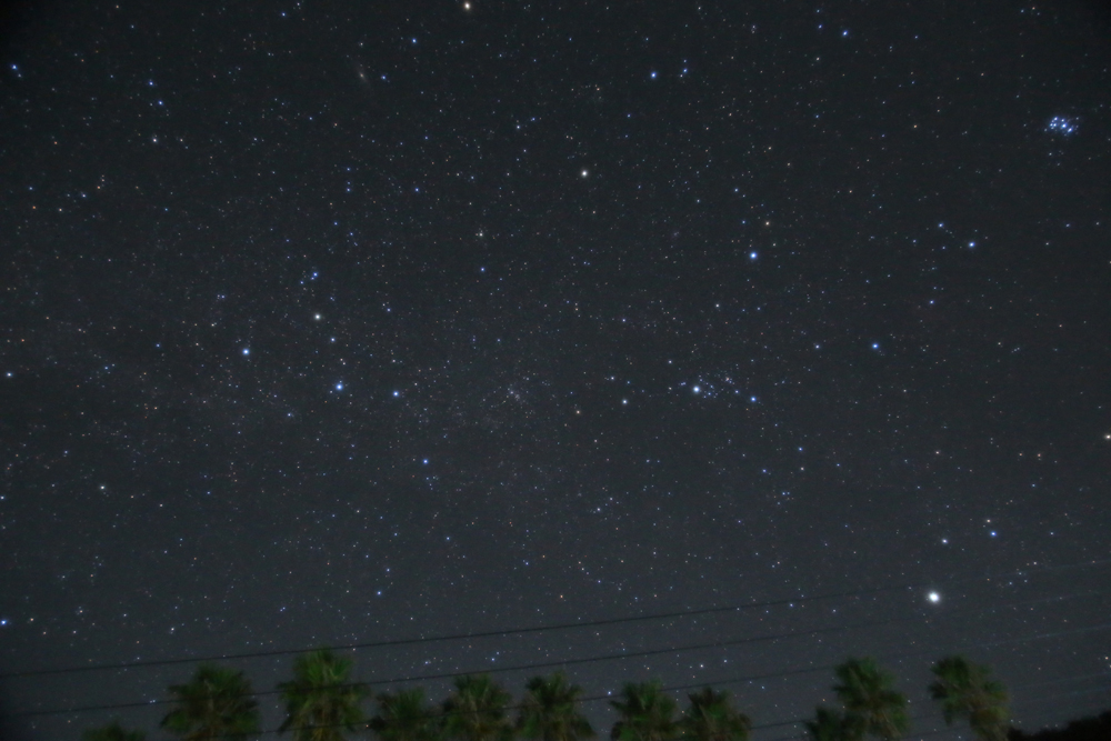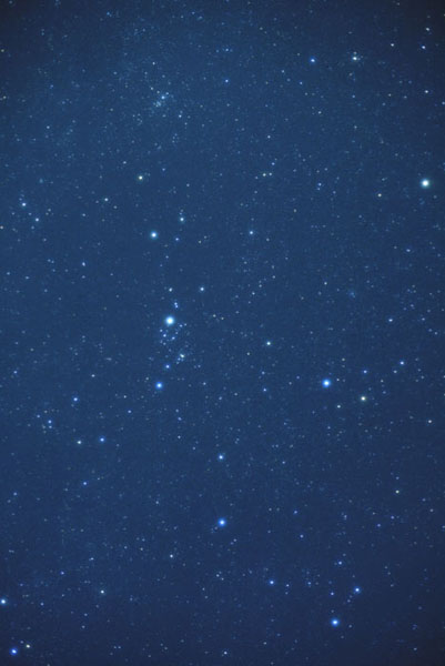 はくちょう座から続く天の川の流れに全身が浸かっているために、細かい星々に囲まれ明るく賑やかな星座です。プトレマイオスがまとめた古代から伝わる星座で、カシオペヤ、アンドロメダ、ペガススなどとともに秋の星座の代表であるペルセウス座。 大神ゼウスの血を引く半神(ヘロス)で、ギリシア神話の中でも古い物語のひとつです。 ゼウスとダナエの間に生まれ、国王から母子ともども海に捨てられ、のちに凱旋するまでを古代エチオピアの物語と絡めて、星空に一大絵巻を繰り広げる英雄。カシオペヤとケフェウスの間に生まれた美しいアンドロメダとの間に沢山の子どもたちが生まれ、血縁的にはヘラクレスとも繋がっています。 写真を見てると、アルゴルと呼ばれる星の位置には、ギリシア神話に登場する女怪メドゥーサの首が置かれています。この星は2-3日の間に明るさの変わる変光星(明るい星の前を暗い星が通過するため)として知られていますが、そのメカニズムが確認されたのは近代に入ってからのことです。 このメドゥーサの顔を見たものは、どんなものは恐怖のあまり石になってしまうと言う魔力を持っていましたが、ペルセウスに退治された後もその魔力は衰えていないと考えられていたため、古代の人々は、星の異変(明るさを変える)を知った上で、ここに「悪魔の頭」を置いたのです。 ★写真をクリックすると星の結び方が現れます。ただし、この結び方には決まりがありませんので、ここで紹介している結び方が正しいというわけではありません。 |