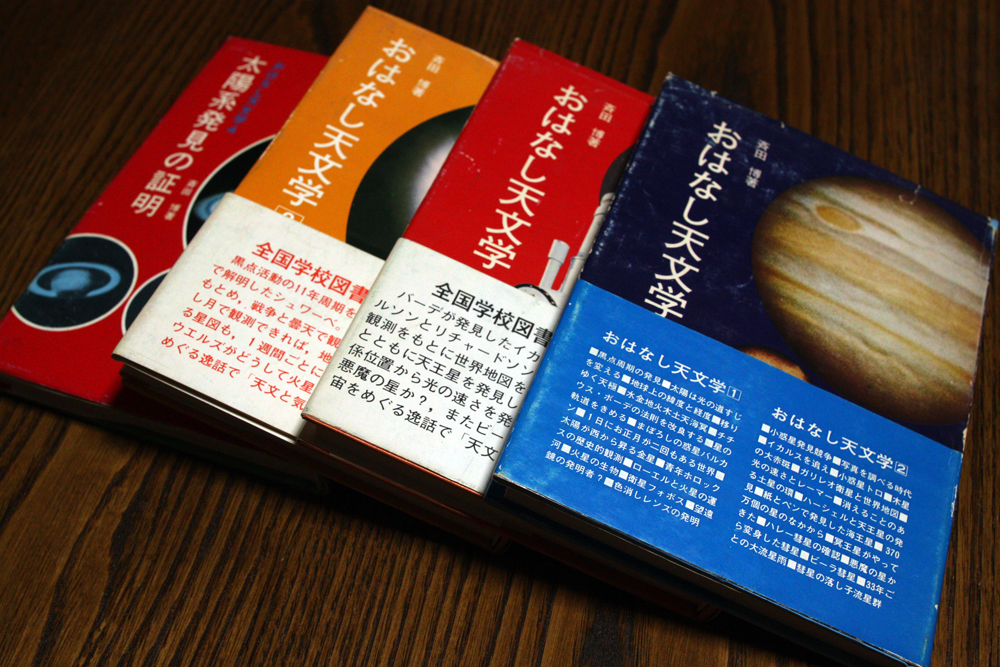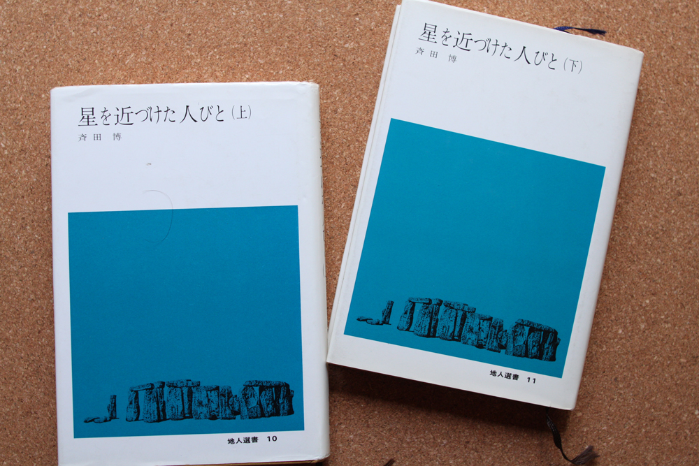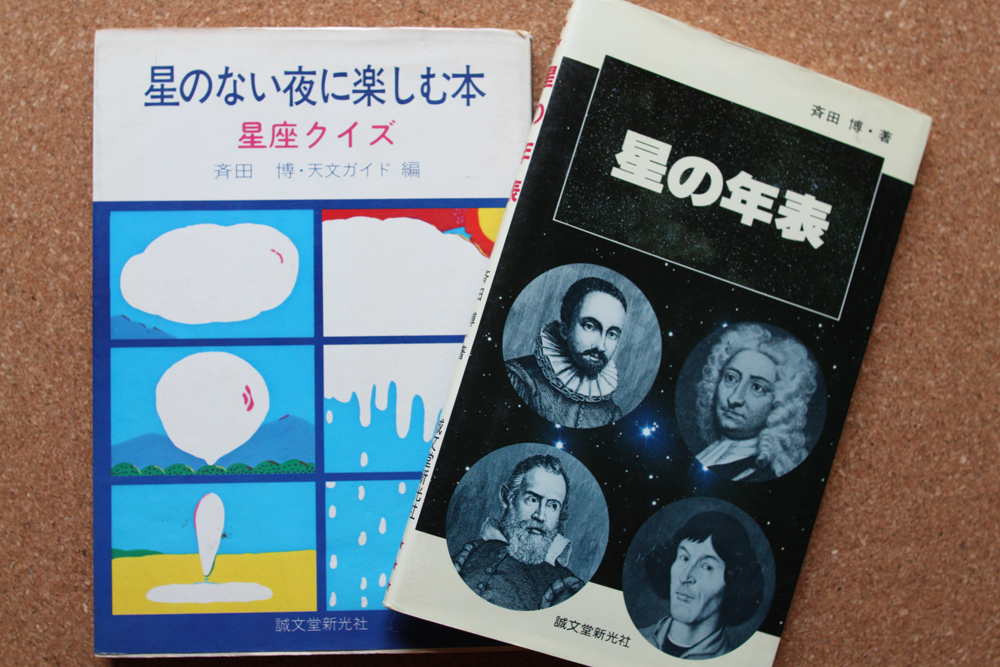 | 直下の2冊(星のない夜に楽しむ本、星の年表)が、まさか斉田さんの執筆されたということを知ったのは、私が『星を近づけた人びと』を読んだ後のことでした。 『星の手帖』への執筆も多かったし。とにかく斉田さんの作品は、星のソムリエのネタ帳にはかかせないような天文関連の、あまり表立って登場しないようなエピソードが満載なのです。 |