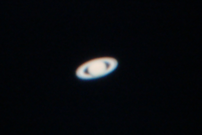| 2015/07/17(19h31m)。 土星と言えば何はなくとも「わっか」を思い浮かべるでしょう。この写真はiPodについている携帯カメラで撮影した土星です。「レンズとアイピースがうまく合致して、手ぶれとシャッターチャンスがかみ合えば」こんなにも美しい姿を映せる時代になってしまいました!素晴らしいというかなんというか(笑)しかし、欲張ってズームして撮るとさらに難易度がアップしてしまいます! |