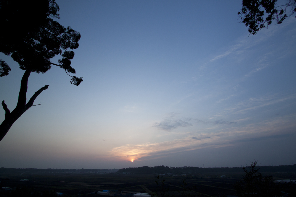 清明の朝、全天雲が全くなく、いつもの高台に行くと東の地平線上にのみ雲…