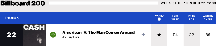 | またまたクエンティン・タランティーノ監督作品に挿入曲として、しかも嬉しいのはキャッシュ&ルービンでレコーディングされ、アメリカン・シリーズでは未発表作品。アコースティックギターによる弾き語り。 Billboard200は58位(2004/05/01) |