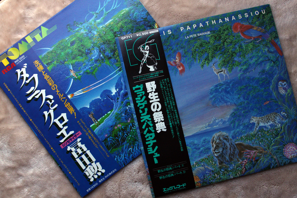 | 自然をテーマにした野生三部作の2枚目。第一作目は『動物の黙示録』、第三作目は『野生』。このアルバムもドキュメンタリーのサウンドトラックということもあって、目をつぶって耳を傾ければ映像が浮かんで来るような作品。冒頭からヴァンゲリスらしい、しかも彼の楽曲の中では一、二を争う美しく穏やかで牧歌的なメロディ。特にパート2の面では、かつてテレビ朝日系で放送していた『日本百景』で、ヴァンゲリスの『難曲物語』のサントラと一緒に使われていたほどです。 ちなみに、上の写真で一緒に並べてみましたが、『野生の祭典』の日本版ジャケットが冨田勲の『ダフニスとクロエ』のジャケットに似ている、と思うのは私だけでしょうか? |