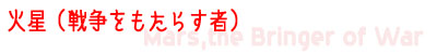 弦のコル・レーニョ奏法による力強いリズムで始まります(ダダダダン、ダダダン)。このリズムが全曲を一貫し、金管楽器による3つの主題によって構成されています。Mars(火星)はローマ神話では軍神ですが、この曲は2度の世界大戦の戦車の戦いのドキュメンタリー映画などでB.G.M.として再三再四使われてきたようです。しかし、この曲だけは第1次世界大戦の開戦前に完成されていて、当時、今日で言うところの戦車は発明されておらず、またホルストは機関銃の音も聞いたことがなかったといいいます。それで、その後の世界を予見した音楽、という解説を目にすることが多々あります。1914年5月に着手。
